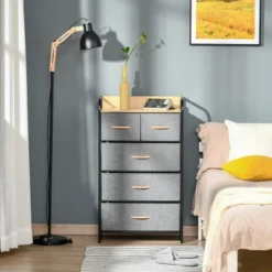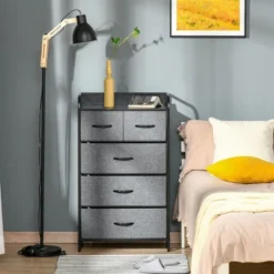 HOMCOM Tall Dresser For Bedroom, 5 Drawer Dresser, Chest Of Drawers With Bamboo Frame, Brown