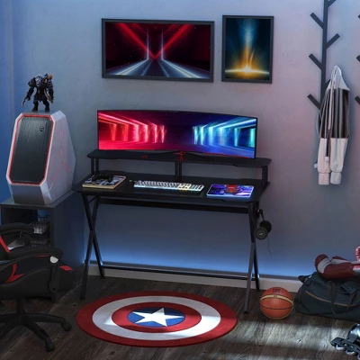 HOMCOM 55 Inch Gaming Desk Racing Style Computer Office PC Gamer Workstation With Elevated Monitor Stand, Headphone Hook, Black