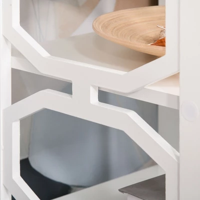 This HOMCOM end table uses a hollow octagon shape on both sides that is beautiful and fashionable. The double-layer design provides more storage space for your personal items. The MDF board is solid for you to support heavy things, up to 11 lbs on each shelf. The end table is lightweight so you can easily move it to any room you need. Utilize your living space and storage options with our side table from HOMCOM.