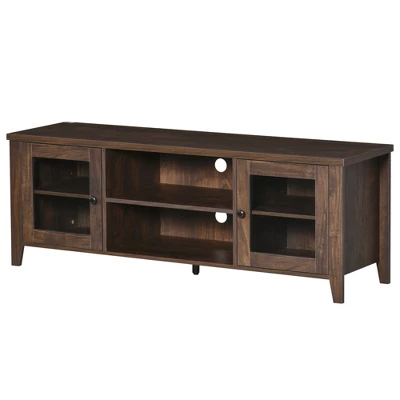 Add a stylish accent piece to your living space with this HOMCOM TV bench. The entertainment stand includes a large tabletop, two open shelves, and two side cabinets with 3-position adjustable shelves for plenty of storage space for game consoles, remotes, and more. Two cable management holes on the back of the media center keep your tabletop tidy, clean and bright. Gather around to watch your favorite shows, movies, and more with this modern and contemporary TV stand with storage.